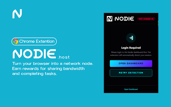 Nodie เป็นส่วนขยายของ Chrome ที่เปลี่ยนเบราว์เซอร์ของคุณให้เป็นโหนดเครือข่ายแบบกระจายศูนย์ ช่วยให้ผู้ใช้สามารถแชร์แบนด์วิธและรับรางวัล เครื่องมือนี้ฟรีช่วยให้ผู้ใช้สามารถมีส่วนร่วมในเครือข่ายระดับโลกโดยการใช้แบนด์วิธที่ไม่ได้ใช้งานและทำงานที่กระจายต่างๆ การออกแบบของมันเน้นความสามารถในการขยายตัวและความเป็นส่วนตัว ทำให้เหมาะสำหรับผู้ใช้ที่ให้ความสำคัญกับการส่งข้อมูลที่ปลอดภัยและบริการเครือข่าย